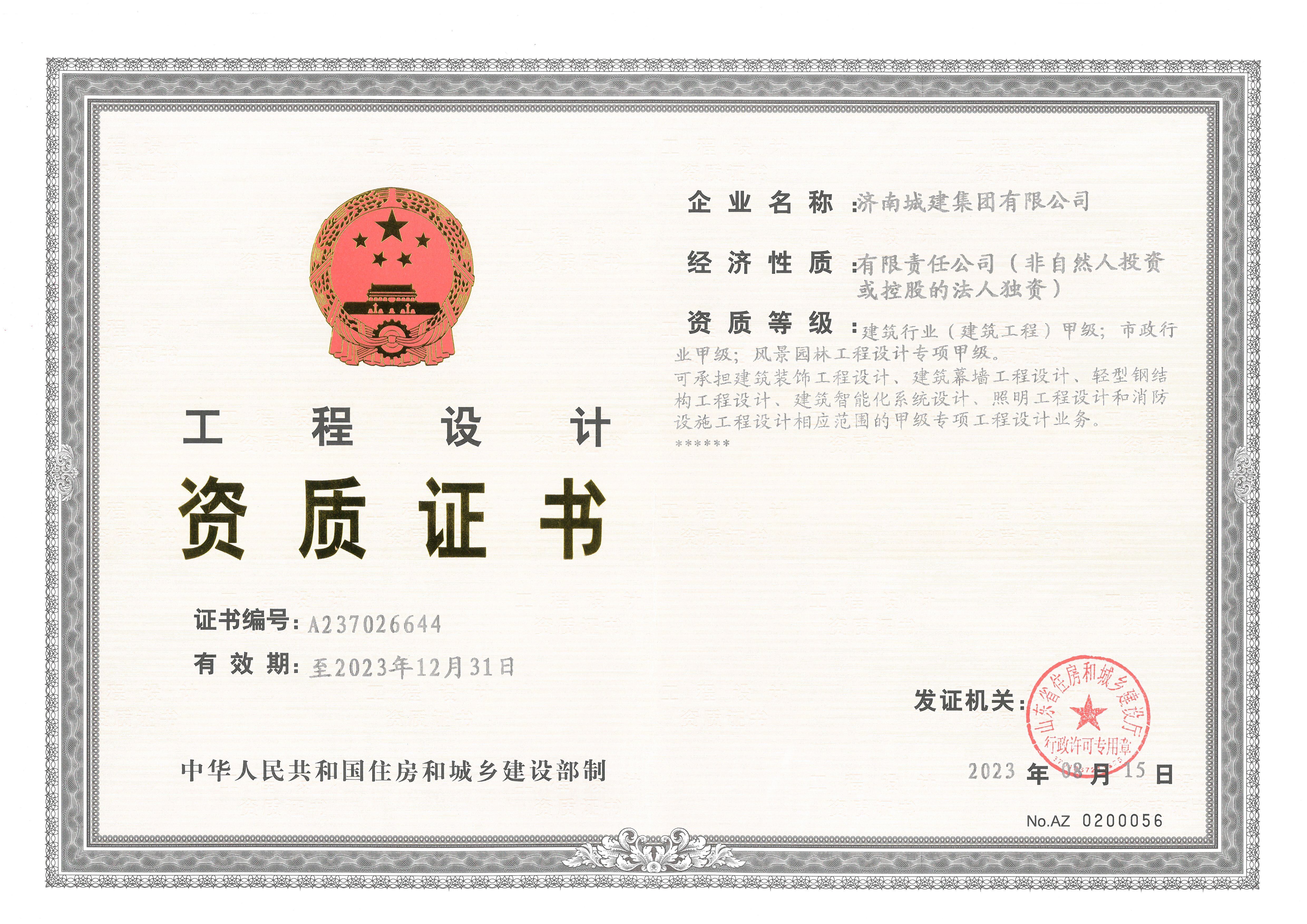 市政行業甲級、建筑工程甲級、風景園林甲級
